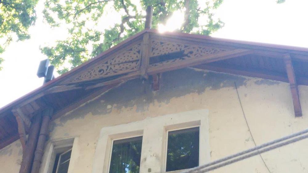 Odtworzenie detalu snycerskiego w szczytach budynku. Zniszczone elementy zrekonstruowano na podstawie zachowanych fragmentów i archiwalnej dokumentacji, używając tradycyjnych technik snycerskich.