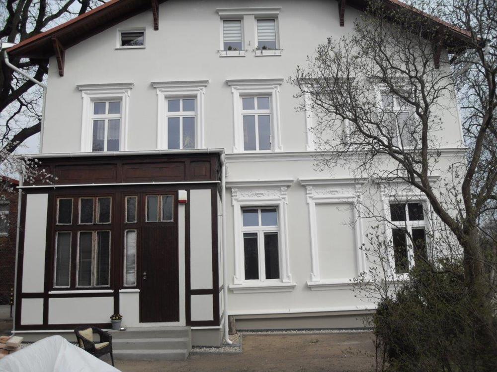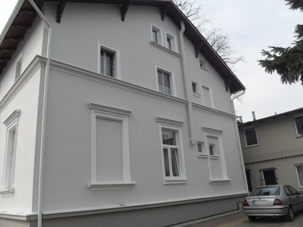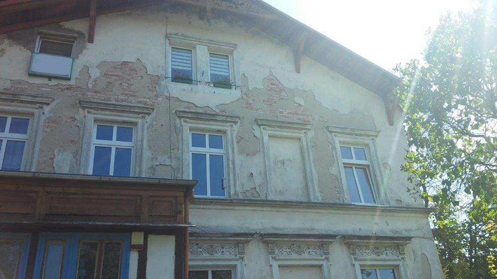Renowację elewacji z wykorzystaniem specjalistycznych zapraw renowacyjnych. Istniejące tynki oczyszczono, ubytki uzupełniono, a powierzchnię wyrównano, przywracając elewacji estetyczny wygląd. Zaprawy renowacyjne dobrano odpowiednio do stanu i rodzaju podłoża.